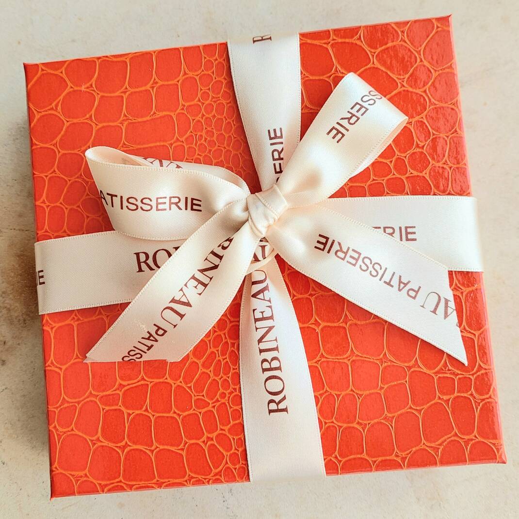 A box of nine homemade chocolates presented in our mock-croc gift box finished with a Robineau ribbon