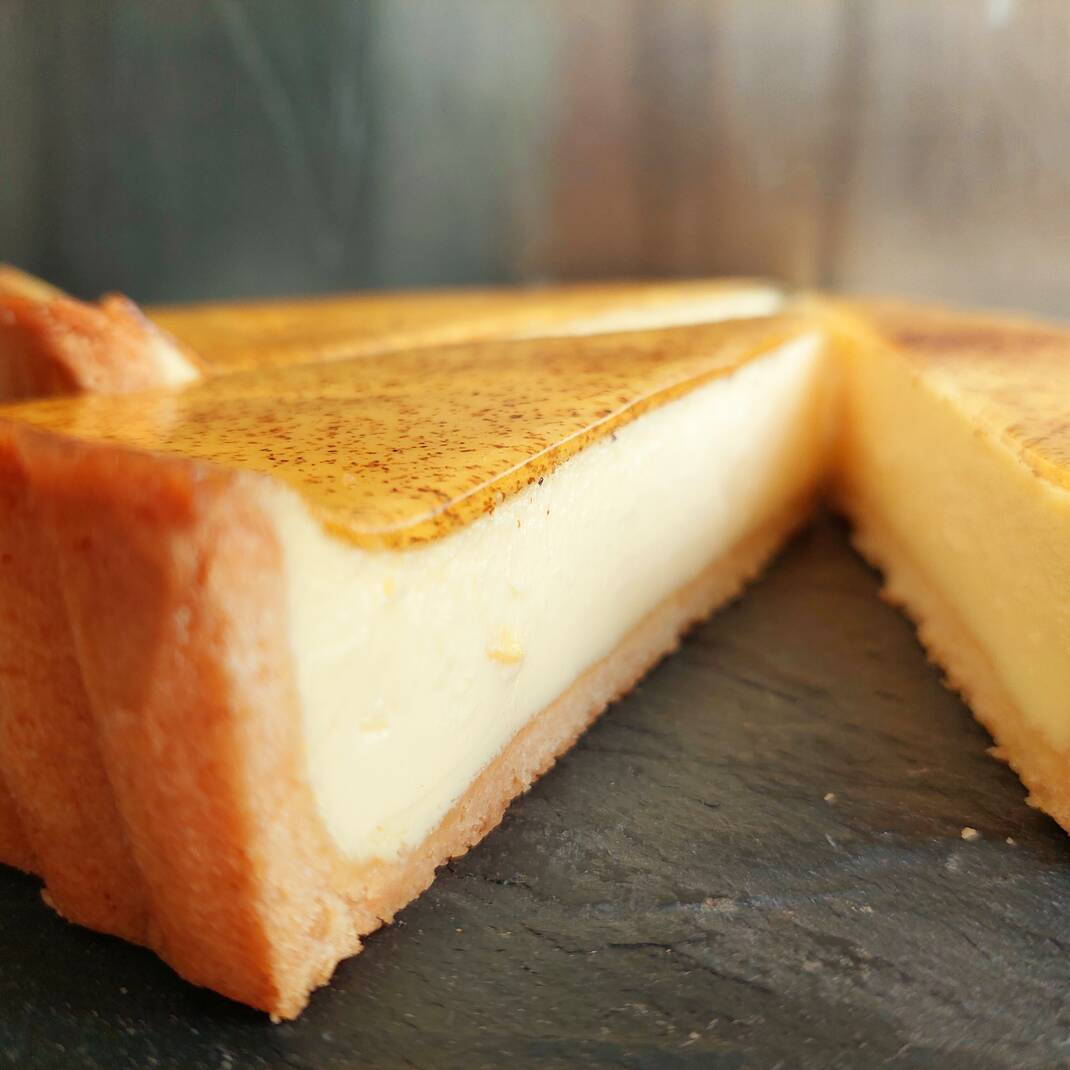 A slice of our popular homemade custard tart.