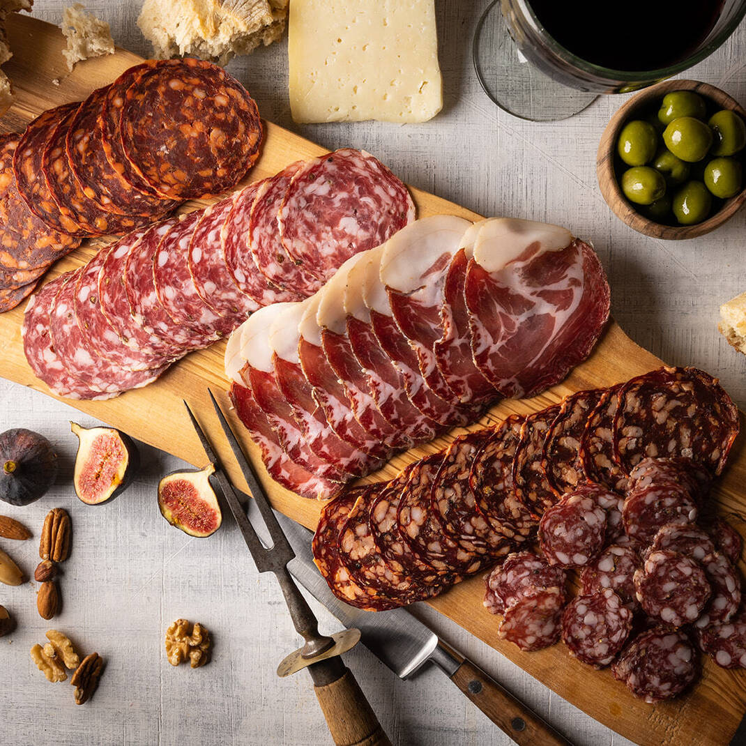 This selection of our most popular sliced cured meats includes Fennel & White Pepper Salami, Hartgrove Coppa, Pink Peppercorn & Cider Salami, Wild Venison Pepperoni and Dorset Chorizo Picante, all made from free range British pork and wild British venison. This charcuterie selection is ideal for creating your own charcuterie sharing board at home, or used as part of an antipasti platter.