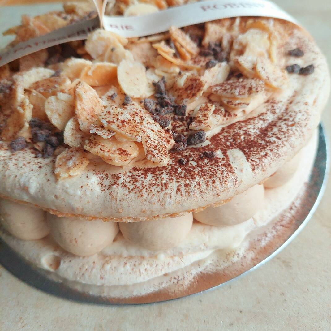 Layers of chewy almond meringue with Salted Caramel Cream and a runny Caramel centre