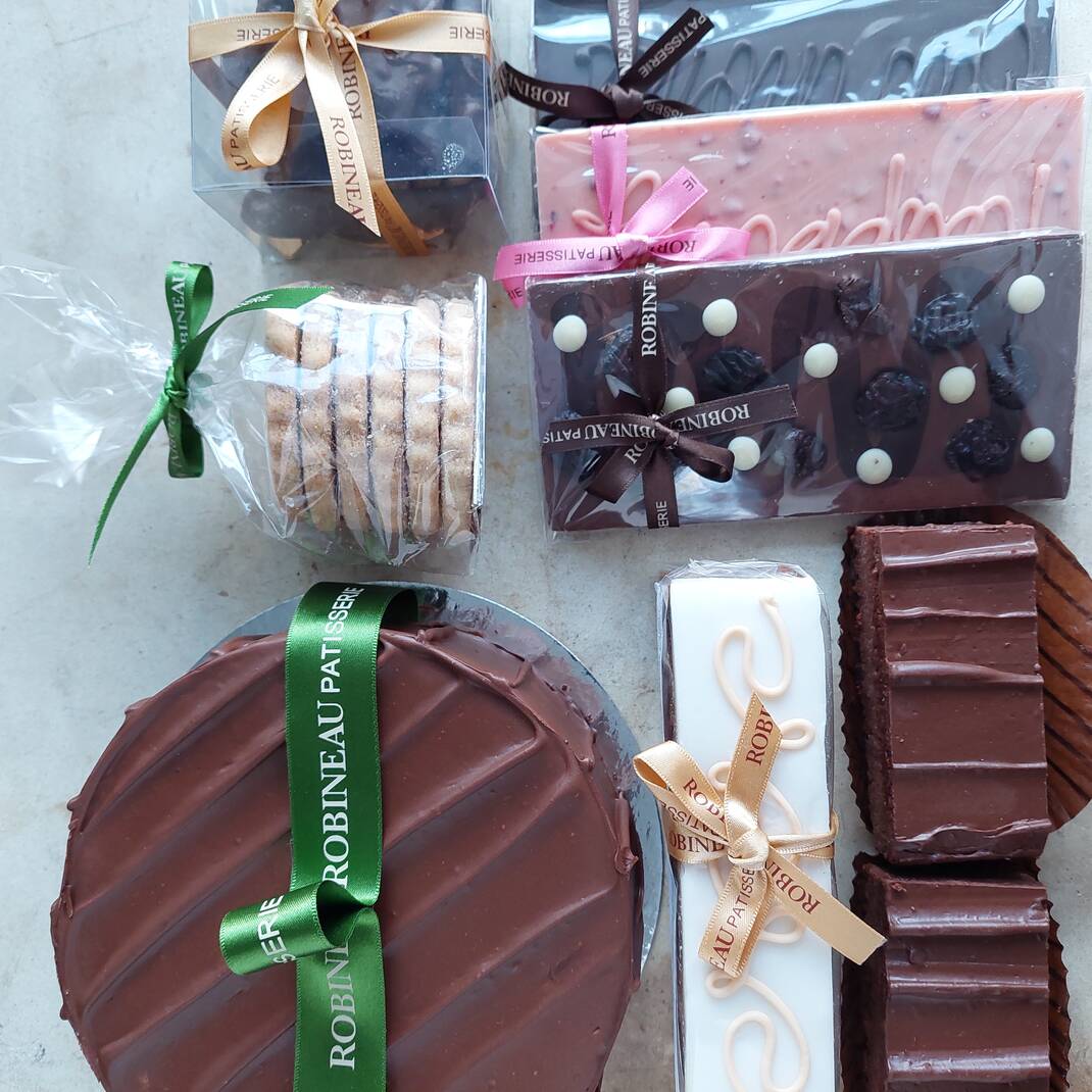 Gift 7: Our famed Robineau Chocolate Gateau made using layers of chocolate sponge and dark chocolate ganache. We make our ganache with Acorn Dairy's organic fresh cream and dark chocolate with min.55% cocoa solids. This 6" cake will be enough to share with friends or to eat by yourself over several days!